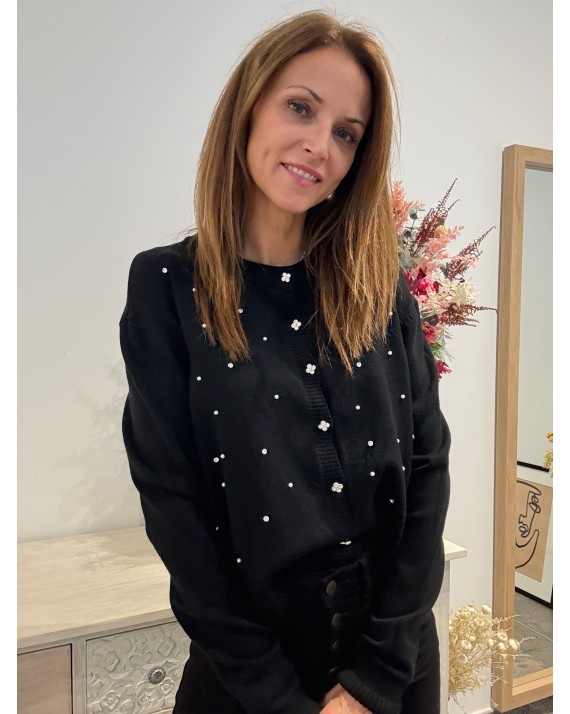 Cárdigan Abalorios Negro