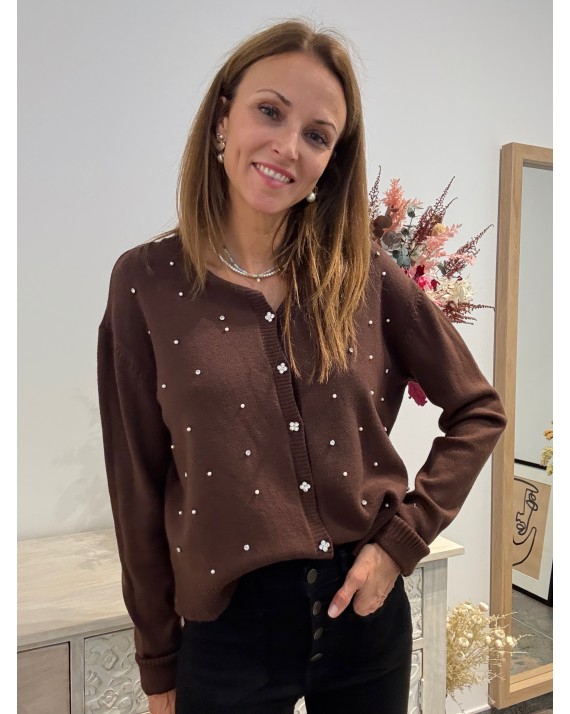 Cárdigan Abalorios Marrón