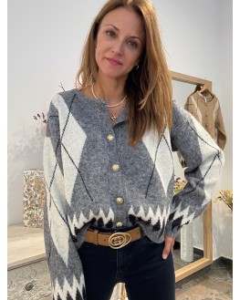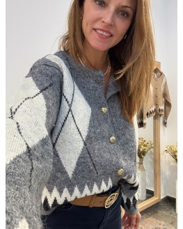 Cárdigan punto Rombos Gris