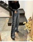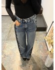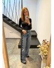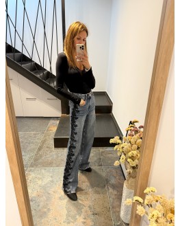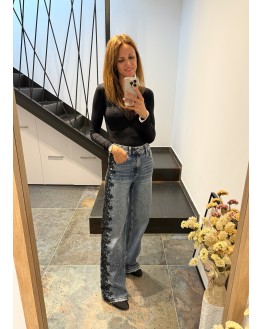 New Jeans con encaje lateral negro y strass