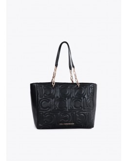 Bolso shopper de efecto piel con diseño acolchado y logotipo. Asa mixta de cadena y material sintético para un look sofisticado. Compartimento amplio con cierre de cremallera.
