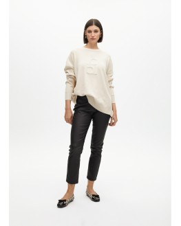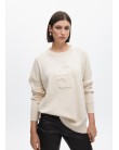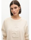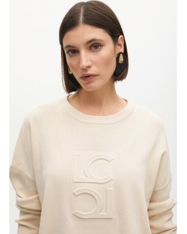Jersey de lana suave con cuello redondo y un sofisticado logo en relieve. Ajuste relajado con mangas largas y puños acanalados. Perfecto para combinar con tus looks casuales. Disponible en un elegante tono neutro que complementa cualquier armario.