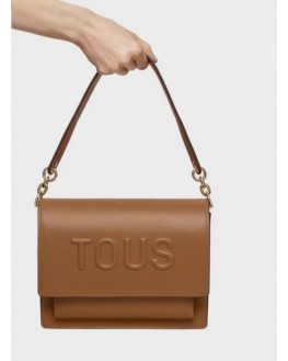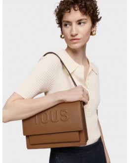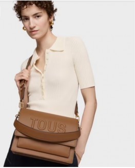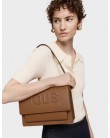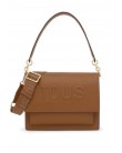 Bolso bandolera mediano Audree TOUS Brenda de poliuretano en color camel. Incorpora una solapa y cierre con dos botones magnéticos. Cuenta con dos compartimentos separados por uno con cremallera y un bolsillo abierto en la parte delantera. Asa de hombro fija y asa bandolera ajustable y desmontable. Medidas (alto x ancho x fondo): 19 x 25 x 11,5 cm