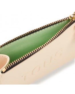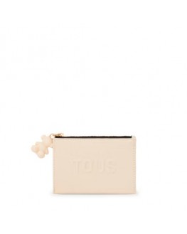 Monedero tarjetero TOUS La Rue New de poliuretano en color beige. Compartimento especial para monedas con cierre de cremallera. En la parte trasera cuenta con tres ranuras para tarjetas, una de ellas transparente. Medidas (alto x ancho x fondo): 8,5 x 11,7 x 1,5 cm.